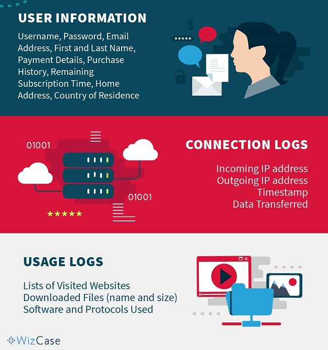 ในบางประเทศผู้ให้บริการอินเทอร์เน็ตจะต้องเข้าสู่ระบบการใช้งานอินเทอร์เน็ตของคุณ หากผู้ให้บริการ VPN บันทึกข้อมูลเดียวกันข้อมูลต่อไปนี้คือสิ่งที่พวกเขาอาจบันทึก:
