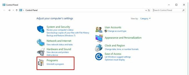 1. เปิดcontrol panelคอมพิวเตอร์ของคุณและเลือก Programs