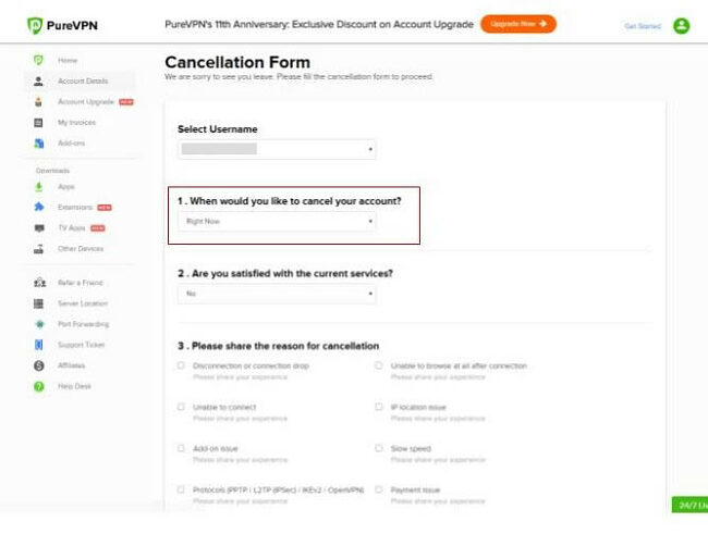 วิธีการรับเงินคืนจากการยกเลิกบัญชี PureVPN